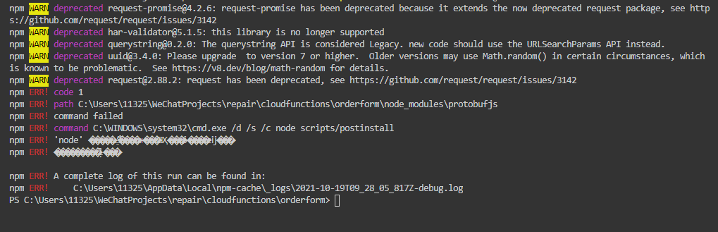 使用npm install 和安装wx-sever-sdk都会出现这个问题,有人能解救一下吗?