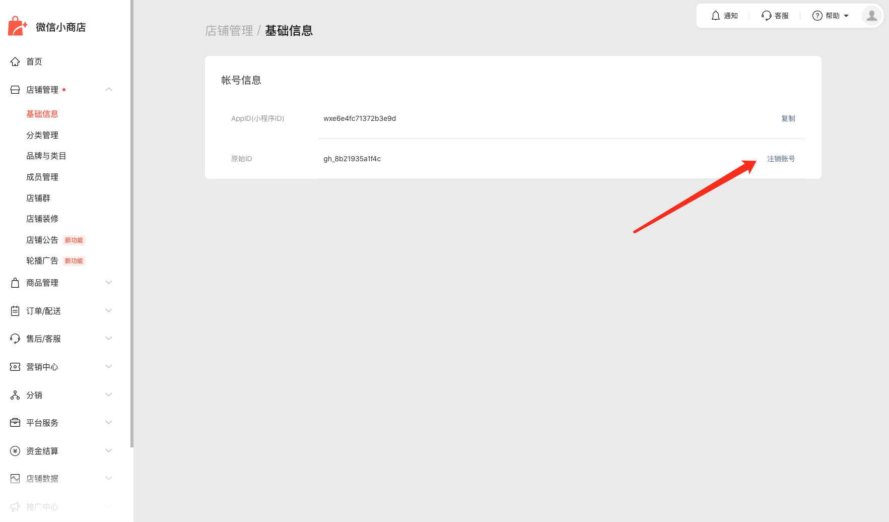 部分小商店自主注销功能已上线,如小商店未完成开店任务的,商家可登录小商店电脑端管理后台(shop.weixin.qq.com)-店铺管理-基础信息-原始ID后方点击注销账户即可。