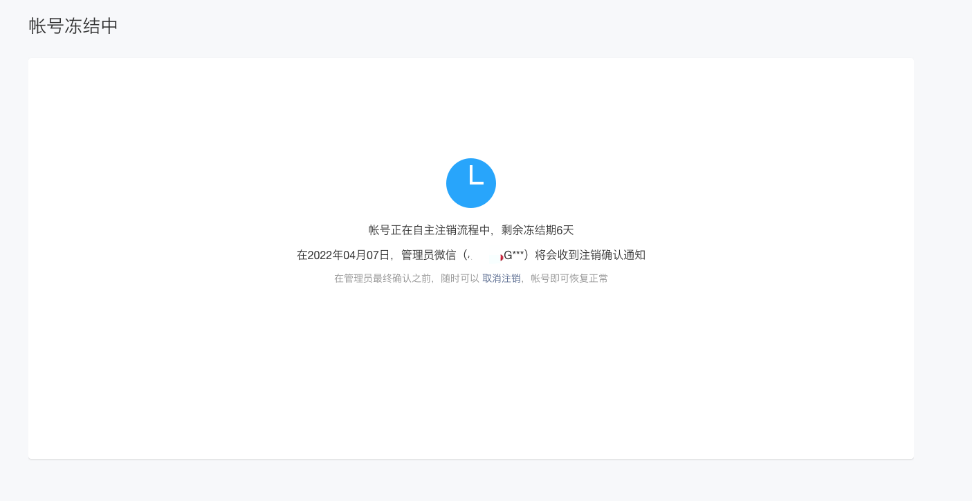 确认注销协议后,需要进入7天冻结期。店铺的超级管理员将会收到一条通知。