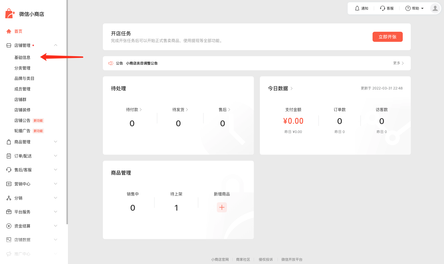 如商家店铺已完成开店任务需要注销的,功能开发中,敬请期待。