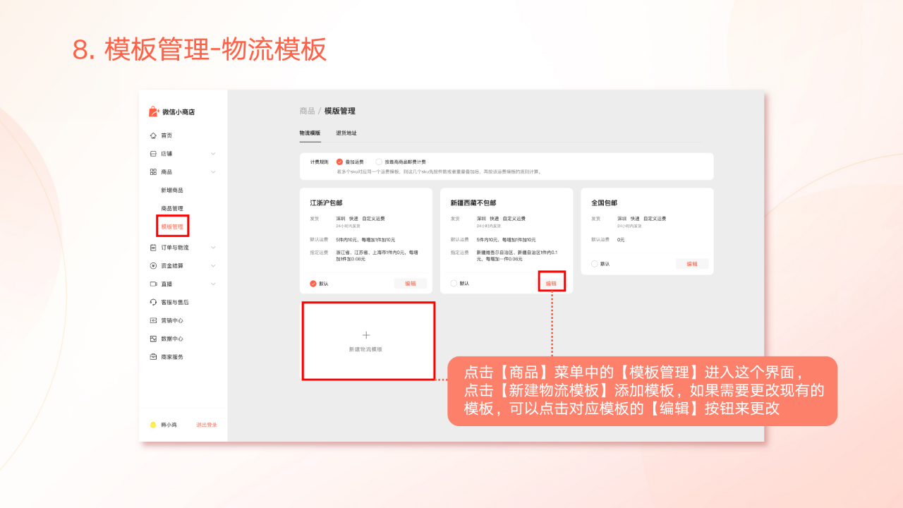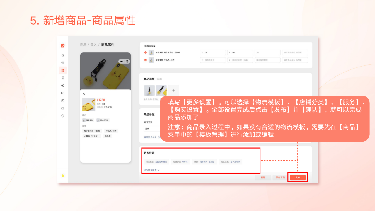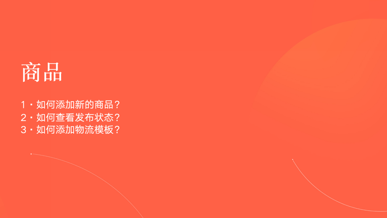 1、如何添加新的商品?2、如何查看发布状态? 3、如何添加物流模板?