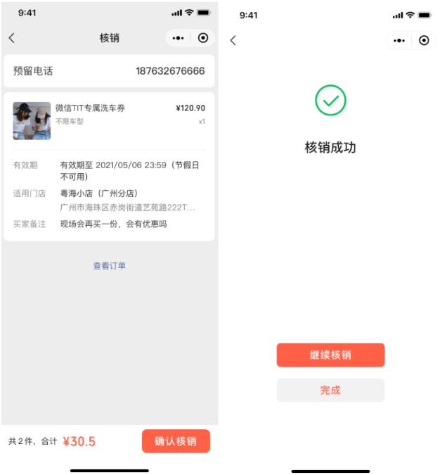 6、验证核销码之后,进入到核销界面,商家和买家在确定商品信息无误之后,点击确认核销,资金就结算至商家账户了。
