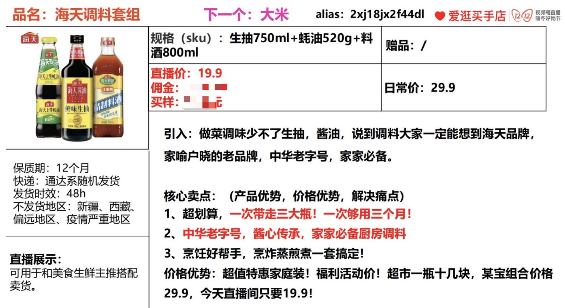 带货主播在带货前需要对自己的商品足够熟悉,比如我要卖一款海天调味料这样的商品,我肯定要对用户的消费需求、商品的卖点信息、价格优势等等都做好提前准备。