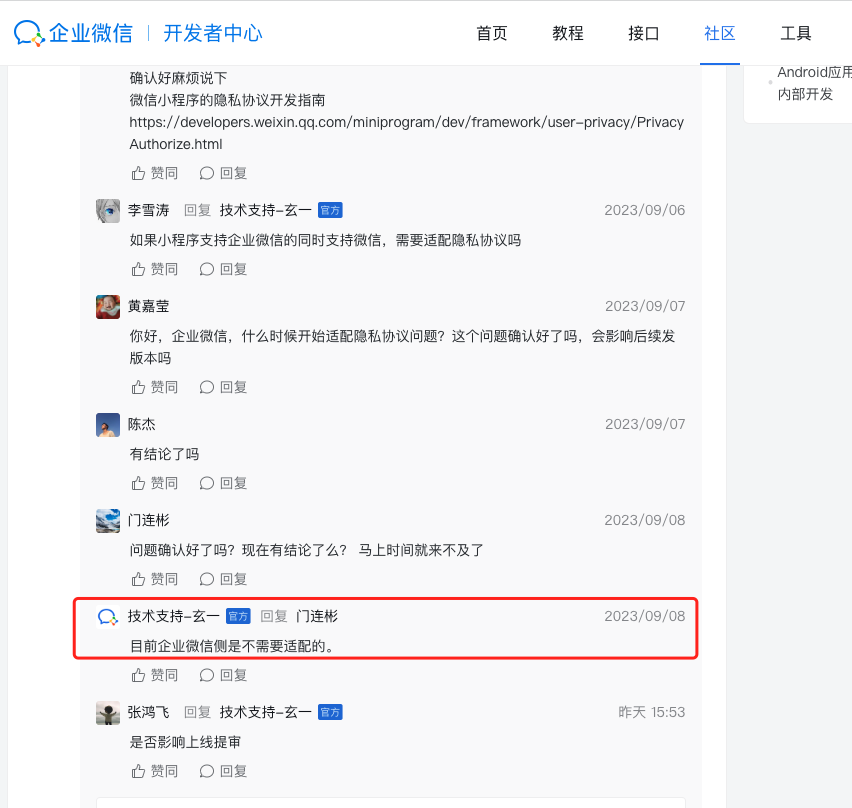 https://developer.work.weixin.qq.com/community/question/detail?content_id=16495948420590466479