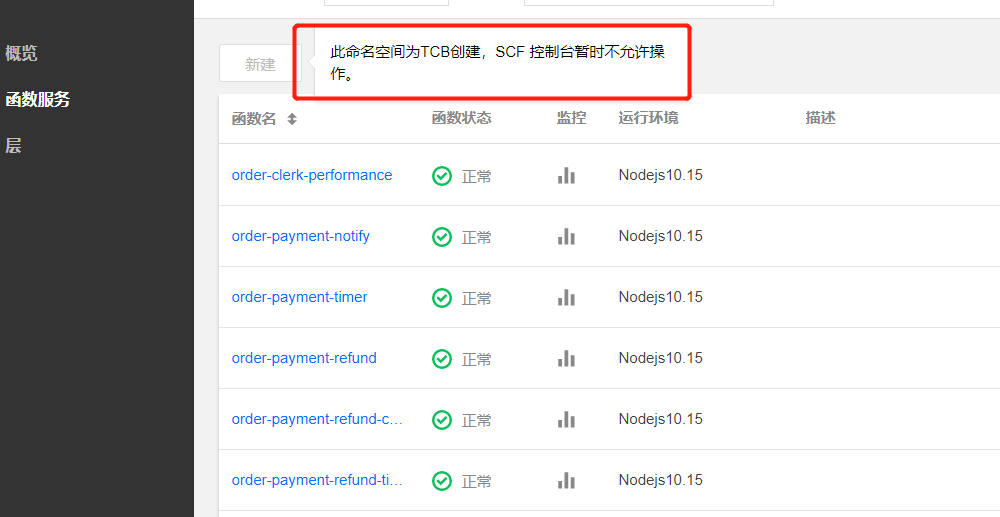 我在绑定层的时候提示“此命名空间为TCB创建,SCF 控制台暂时不允许操作。”