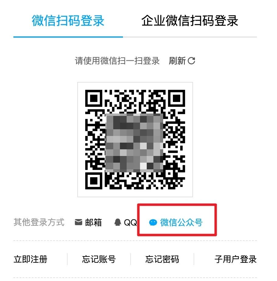 打开登录界面 选择【其他登录方式 - 微信公众号 - 扫码选择对应的小程序(不是公众号)】.