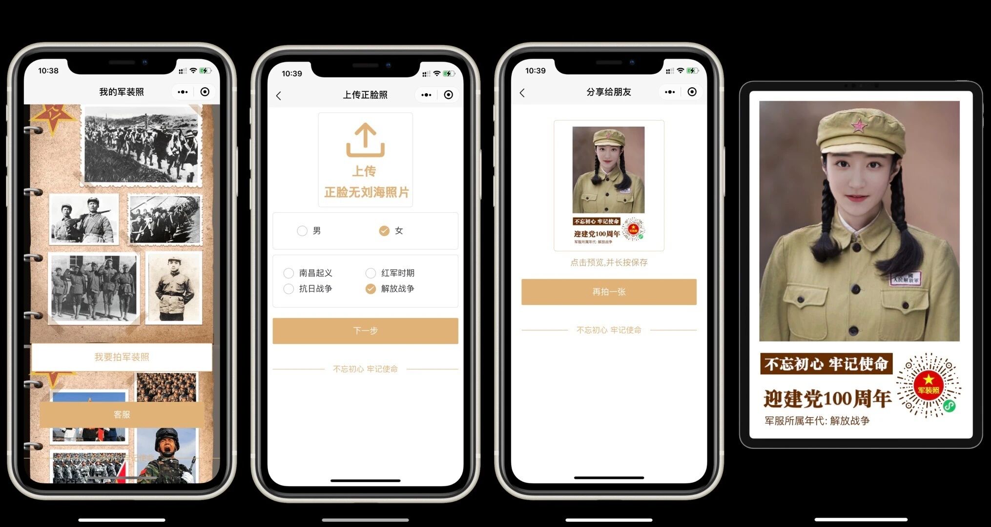 迎庆建党100周年,建国71周年,建军93周年,营造爱党爱国爱军氛围.一键生成属于我的军装照.