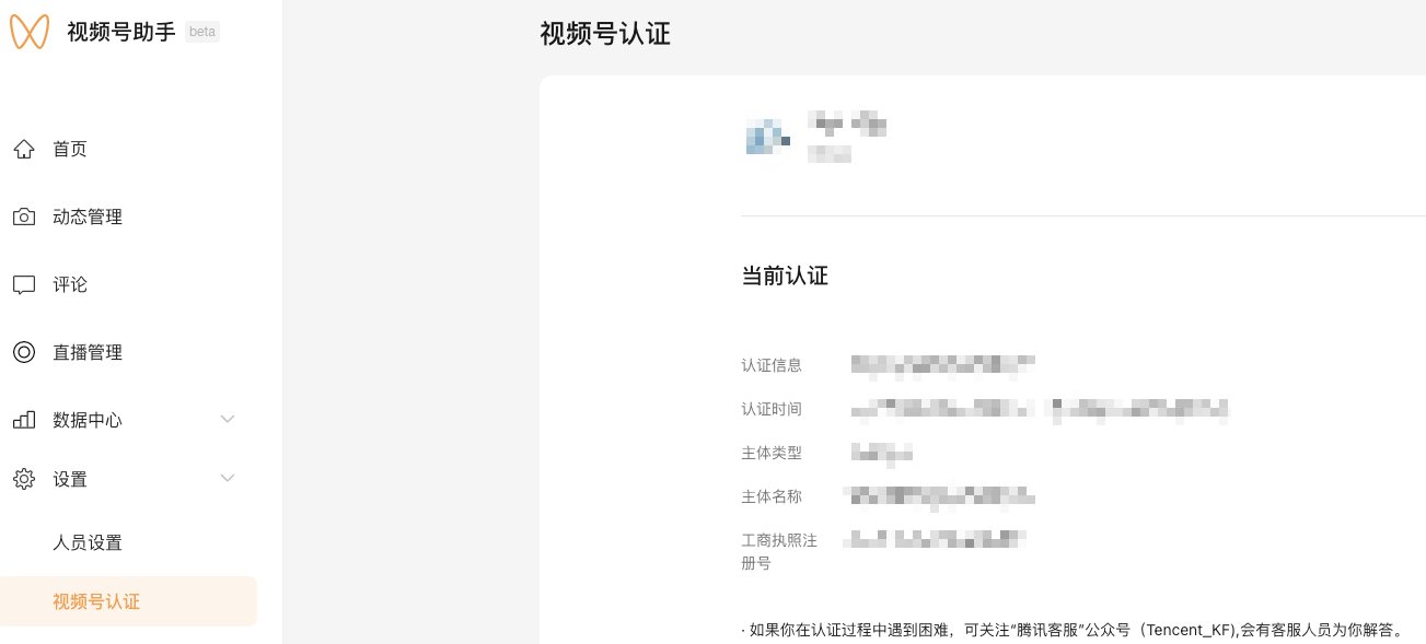 1、检查视频号已认证,可登录PC后台 https://channels.weixin.qq.com/setting/certification 去申请认证