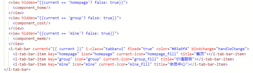 接下来我们要在我们放tabbar组件的index.wxml文件里这样写