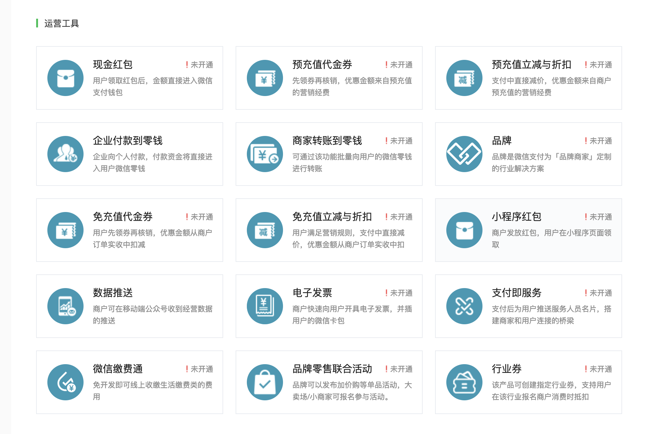 - 2、同一主体下,若有一个商户号满足企业付款到银行卡开通条件,其余商户号也一样可以开通,没有30天/90天的限制。