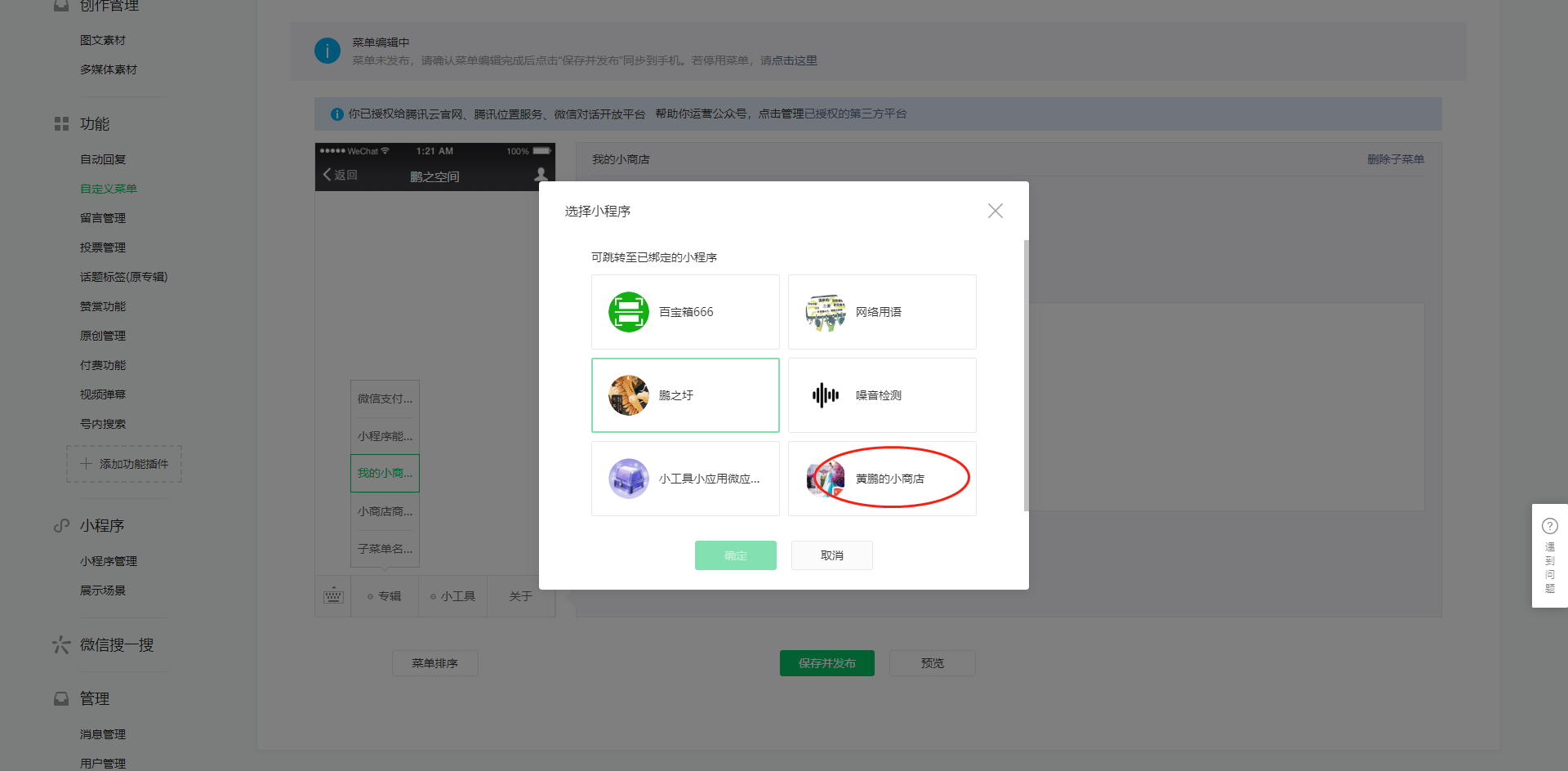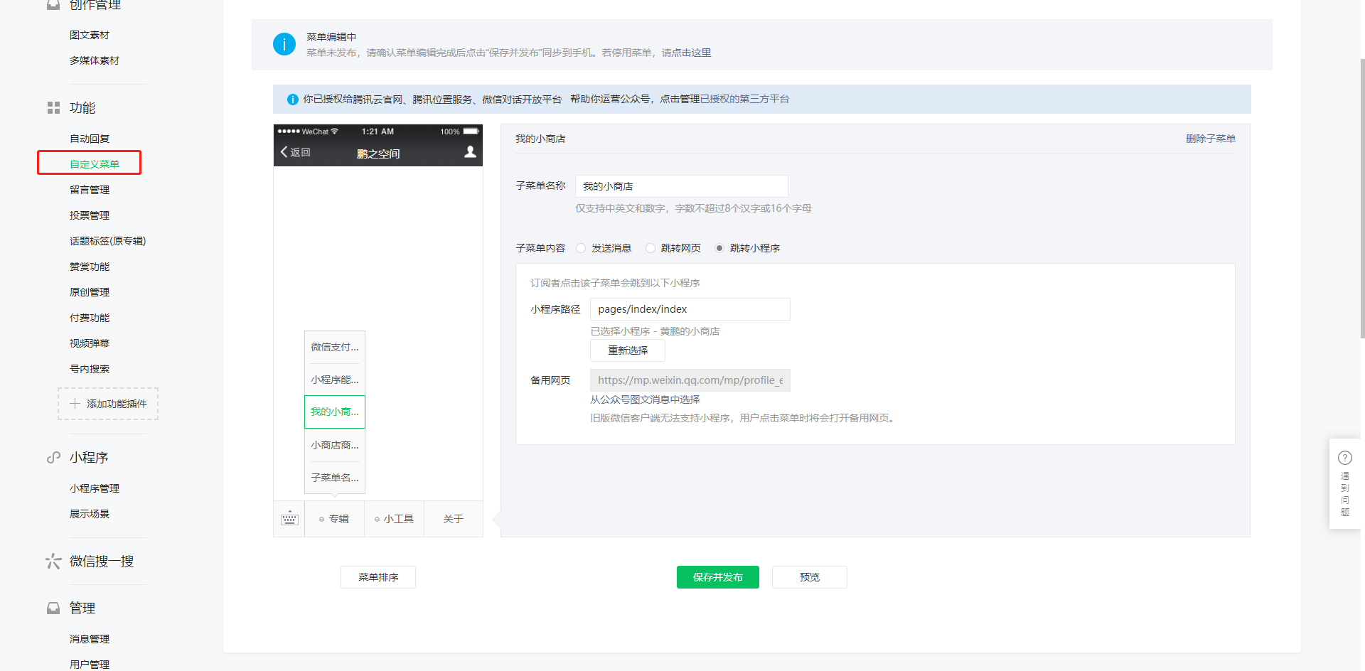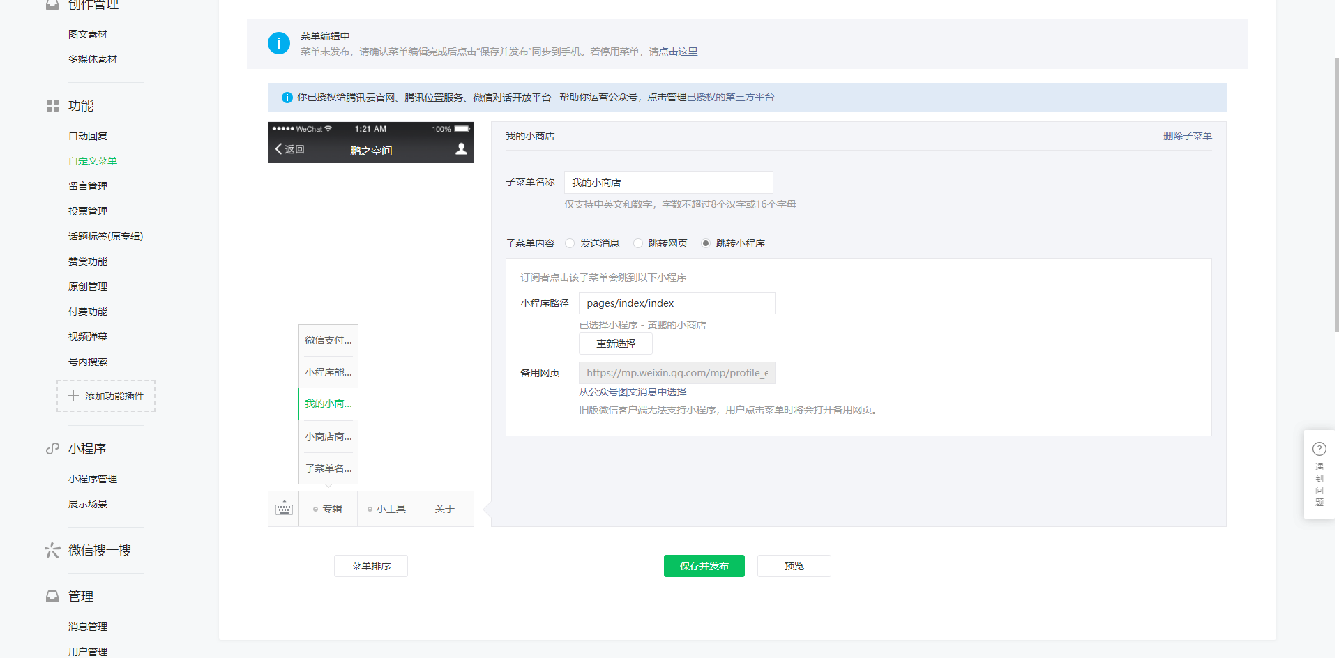 步骤三、公众号菜单配置跳转小程序