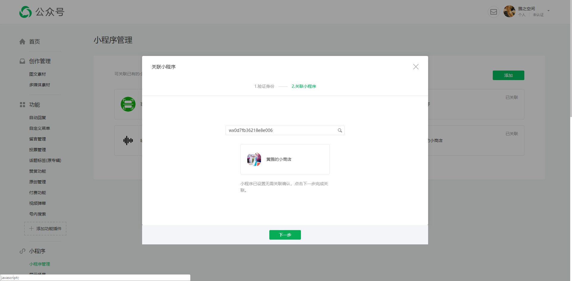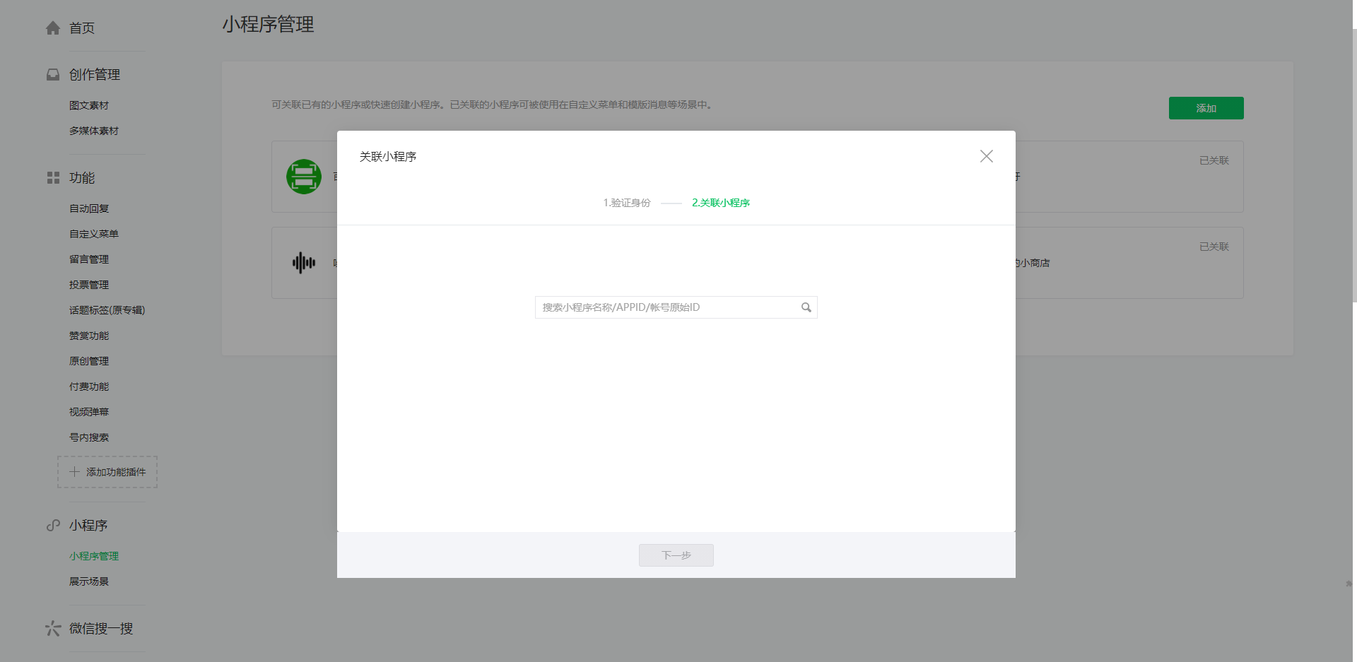 步骤二、公众号关联小程序