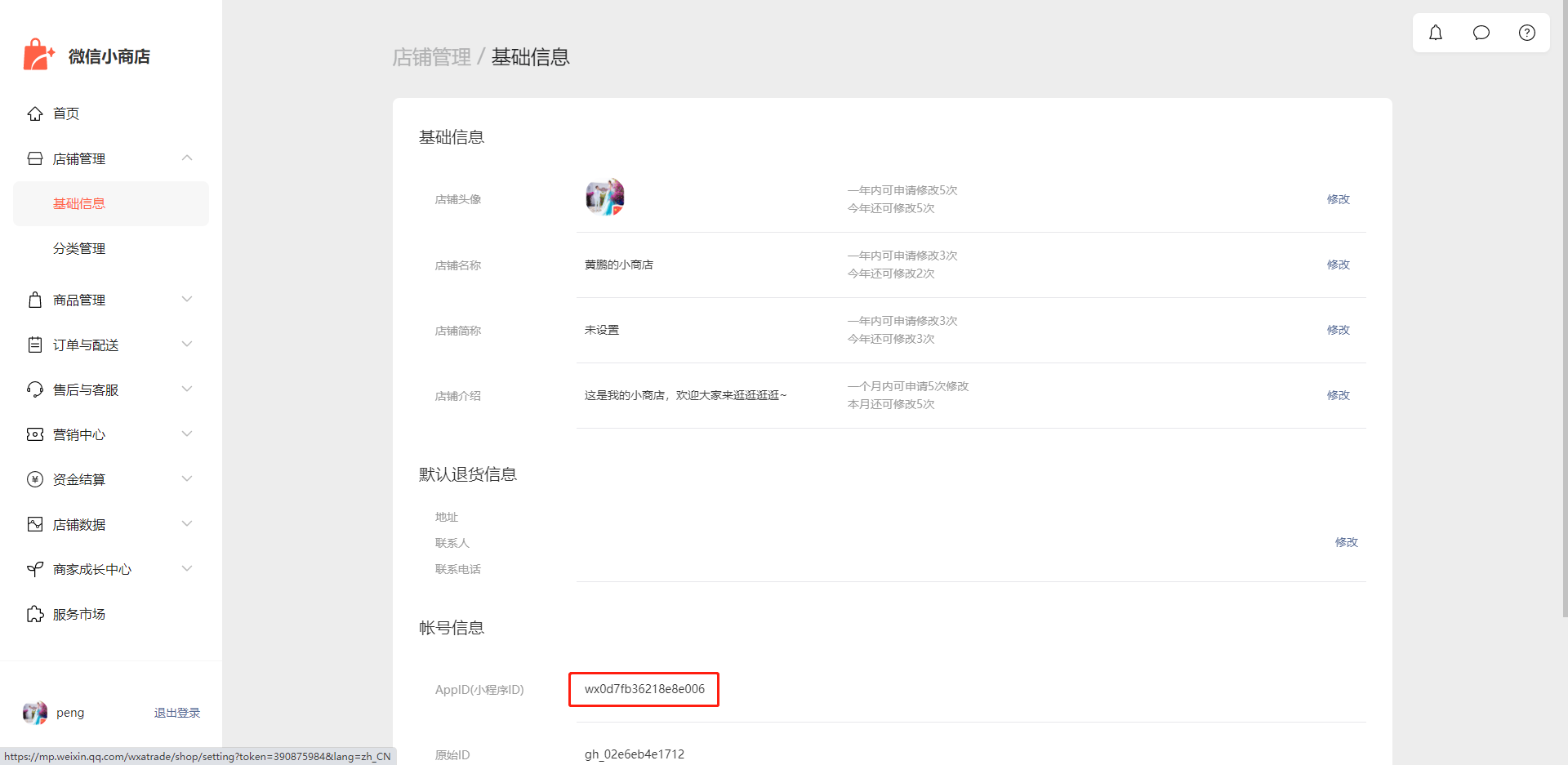 2.http://shop.weixin.qq.com,扫码登录后,依次点击-【店铺管理】-【基础信息】-复制AppID(小程序ID)
