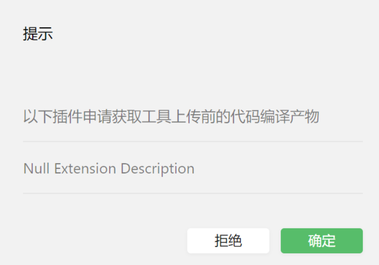 尝试把开发工具的授权全部清除,这样在预览时加固插件会先请求授权,但是授权的弹窗提示让我觉得有些奇怪: