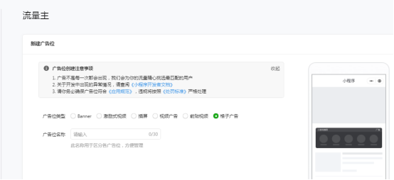 小程序开通流量主之后,可以在流量主功能版块里面添加广告位,选择类型为格子类型即可。(不懂的再问我)