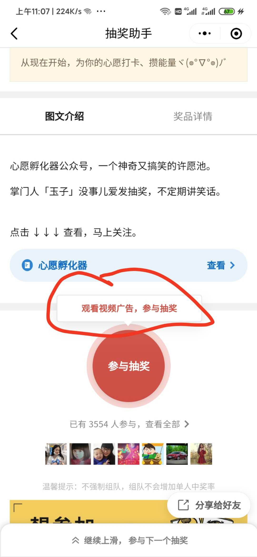 抽奖助手小程序截图,具体的抽奖交互就是首先要看激励是视频广告,这一步是必要条件,绕不过去的,当然并不是所有抽奖都是这种交互,但是肯定是存在的,截图为证