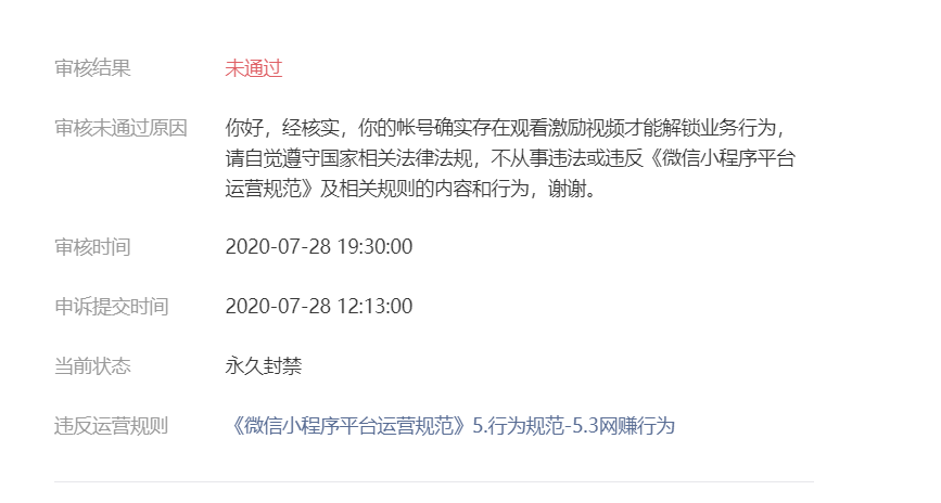 申诉结果出来了,是激励式视频惹的祸