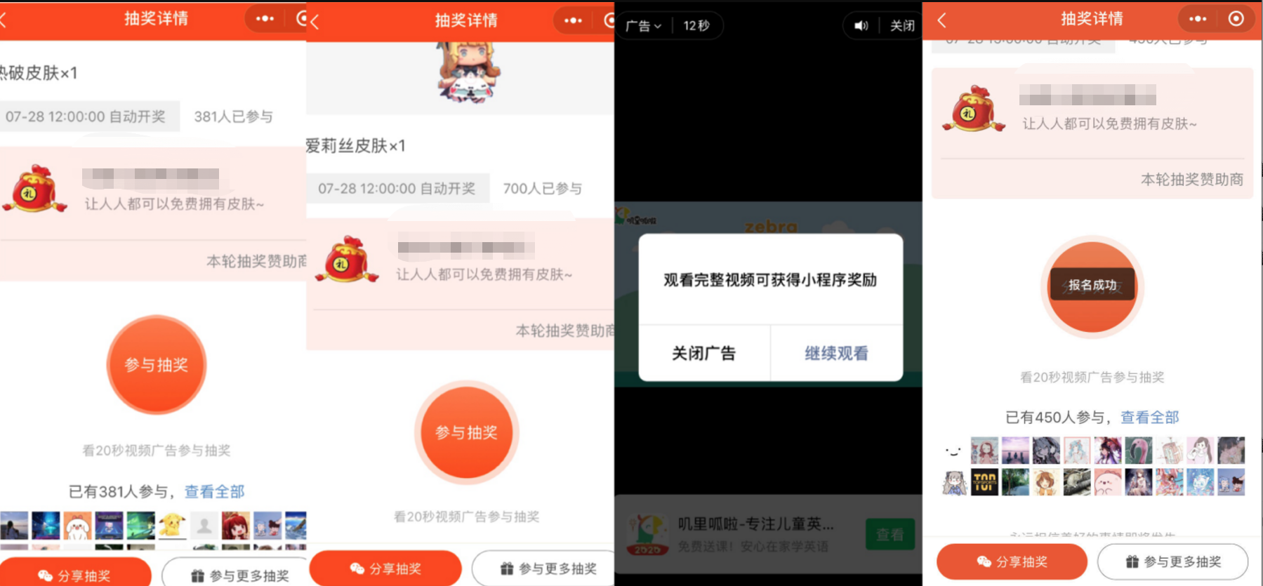 我只能用的小程序以身试法了,目前第二个小程序已上线运营,如果再被封掉,就可以断定是抽奖送皮肤是被封的源头了