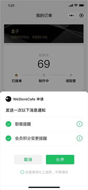 用户可以勾选“总是保持以上选择,不再询问”,这样下次点击时,就直接授权订阅。