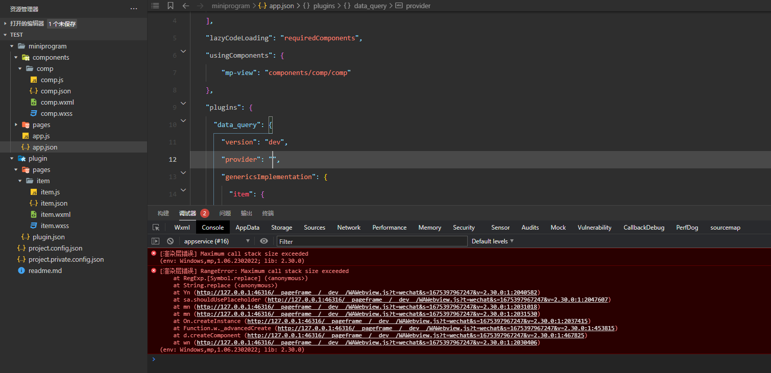 2. 【这个有问题】按照按需加载的原理,直接挂载组件到app上,app.json 添加 "usingComponents" 配置插件引入的组件,但会报错栈溢出 "RangeError: Maximum call stack size exceeded",具体原因待研究。
