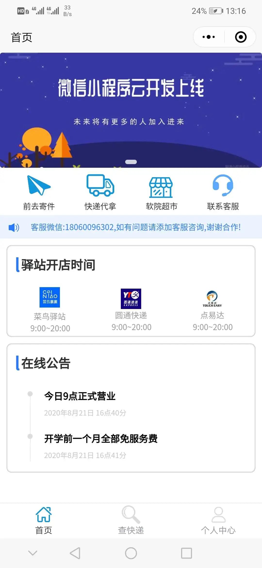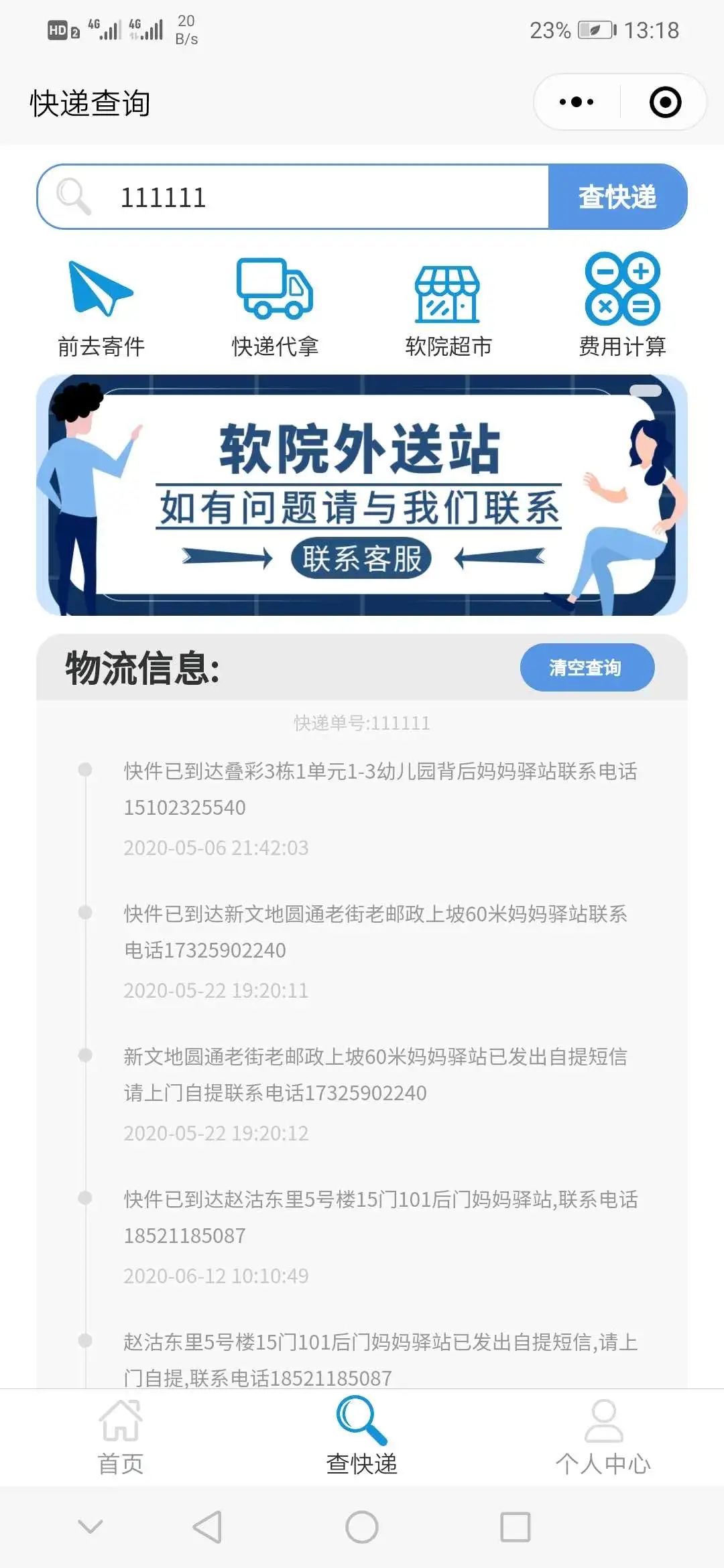 - 查快递部分:由于查询快递是自己利用快递鸟搭建的一个接口,没有https协议,于是利用云开发调试完美解决没有证书问题,可以快速查询当前自己快递的进度和位置。