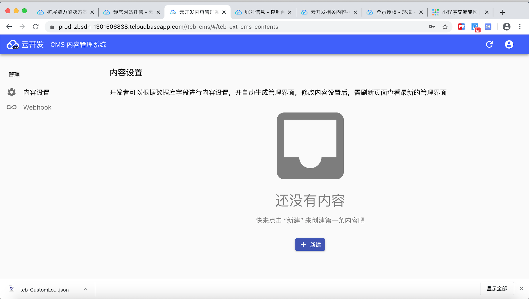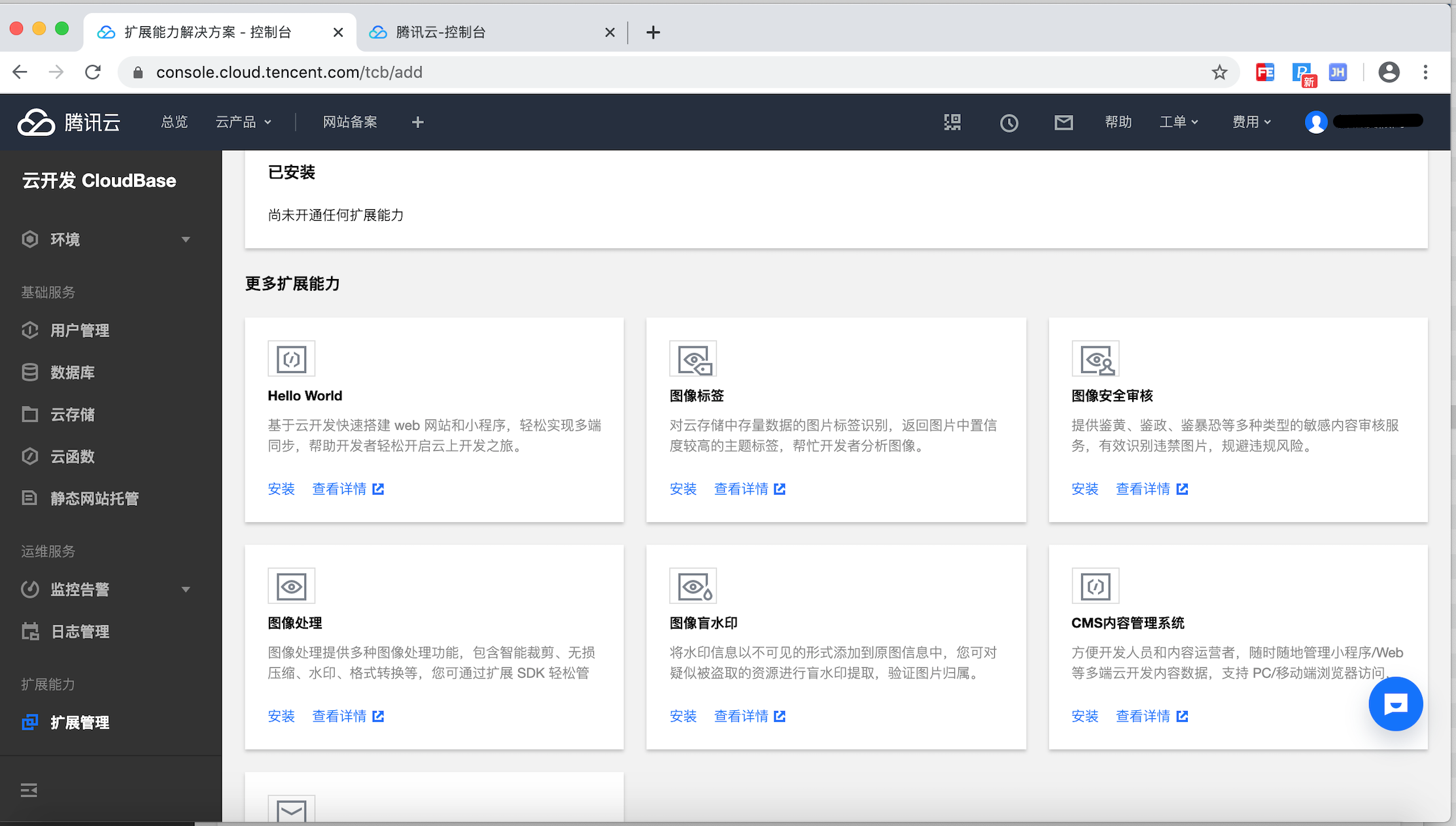 1、后台云开发开通后,在腾讯云后台cloudbase的扩展应用里面没找到云开发CMS的扩展?
