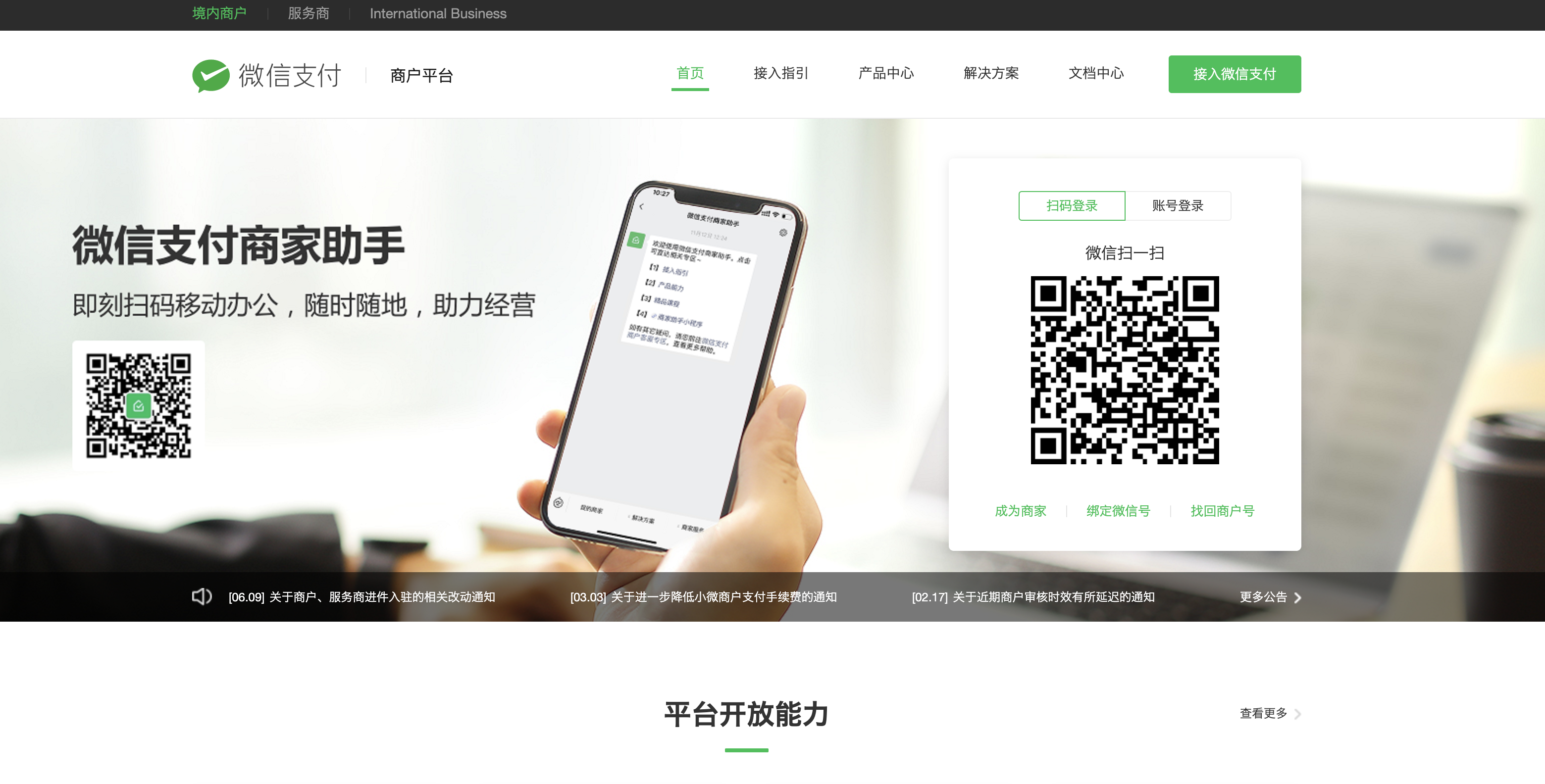 一、使用二级商户号扫码登录微信支付商户后台(商户后台地址点我直达)