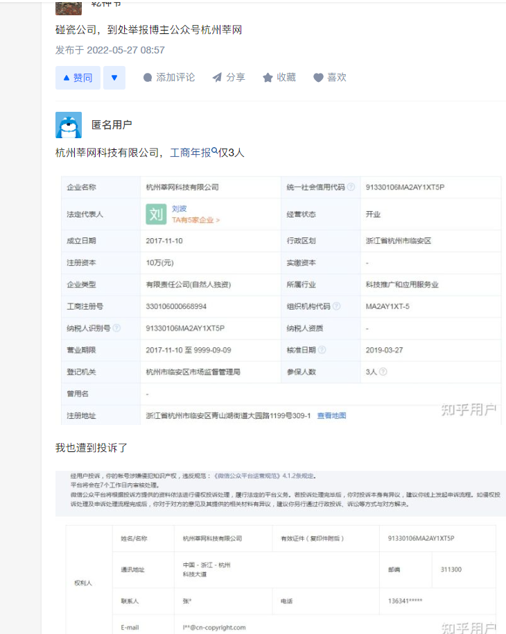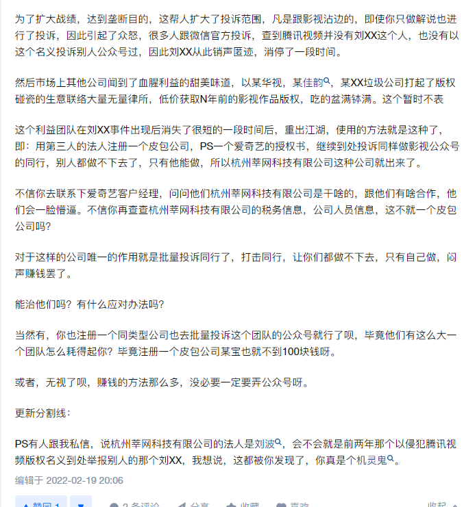 并没有如投诉方所说“恶意侵权及贩卖盗版”,频繁恶意反复投诉“白猫影社”公众号的公司都是在网上出了名的黑料皮包公司,常常拿着自家公司ps文件的授权书,打着知名媒体幌子(如某奇艺的名义)不间断批量举报相关类型的影视微信公众号,搞一些本不属于他们持有影视版权内容的投诉,其用意大家都心知肚明,这里就省略几千字......