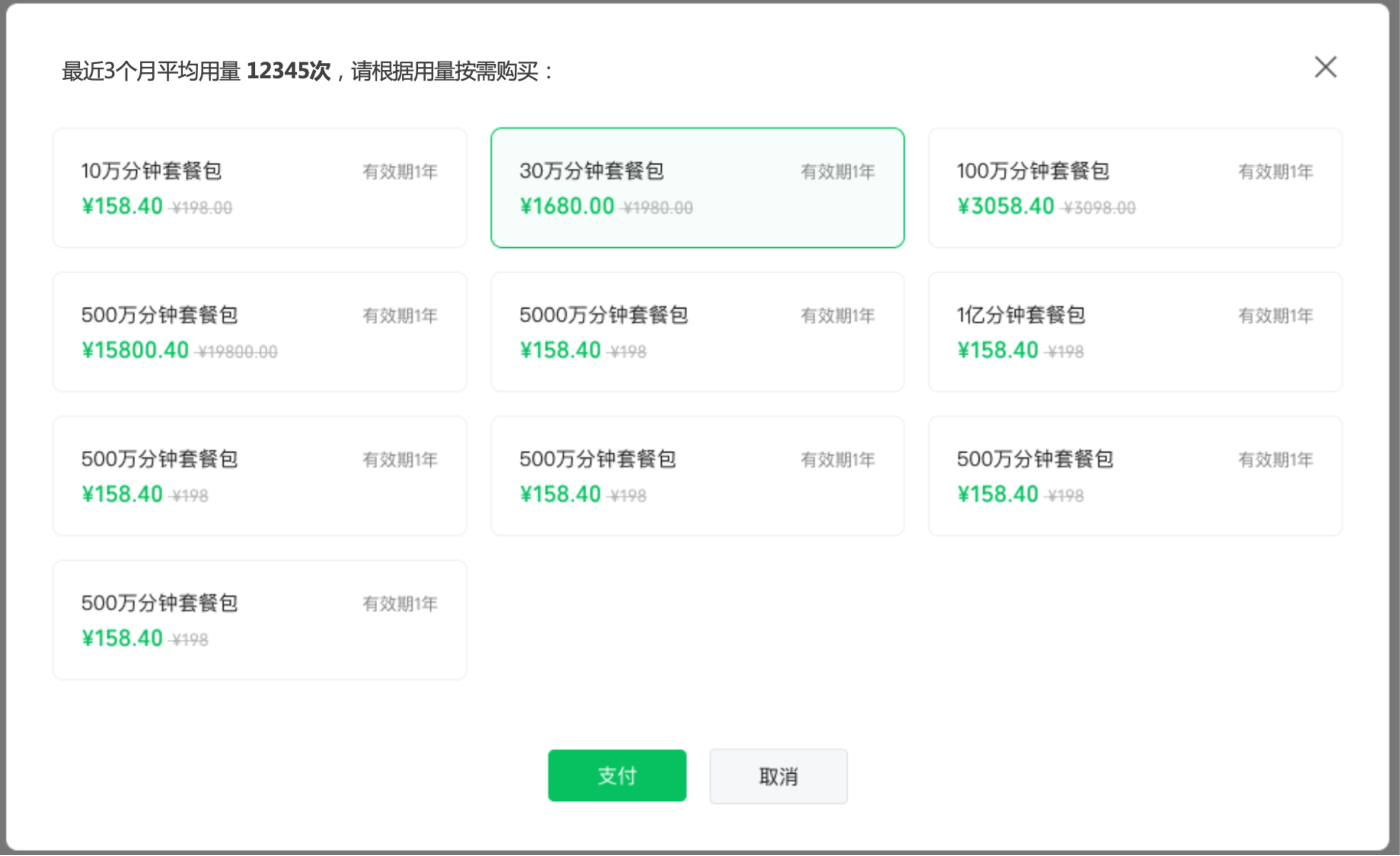 - 2)参考【最近三个月平均用量】,选择所需购买的资源包。