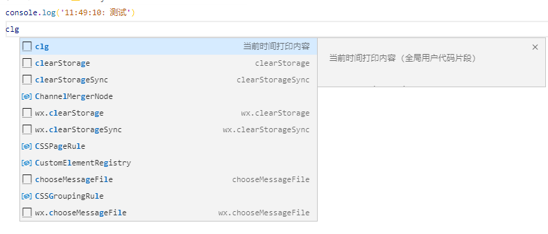 "description": "Log output to console" //说明,对代码片段的详细说明(可省略,如果description不写,默认会显示key键的内容)