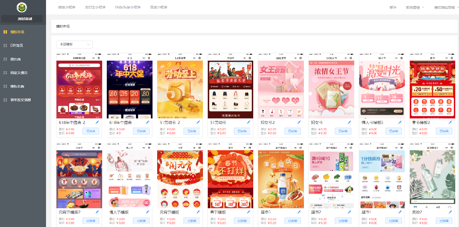 商城可以根据模板市场,利用节日限定模板,再添加几个主题活动,有利于客户引流哦。