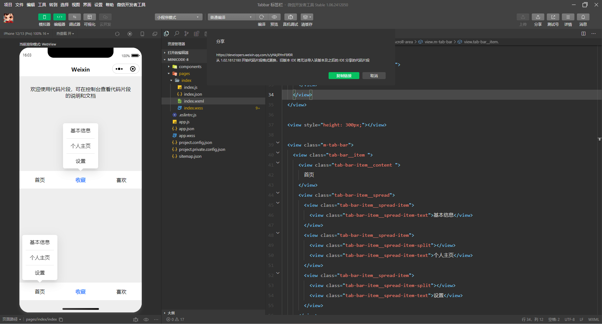 开发钉钉小程序的时候,需要用到 Tabbar 类似公众号的样式组件,试着去写个简单的Demo,写完用微信小程序开发工具复用预览效果,发现可共用。