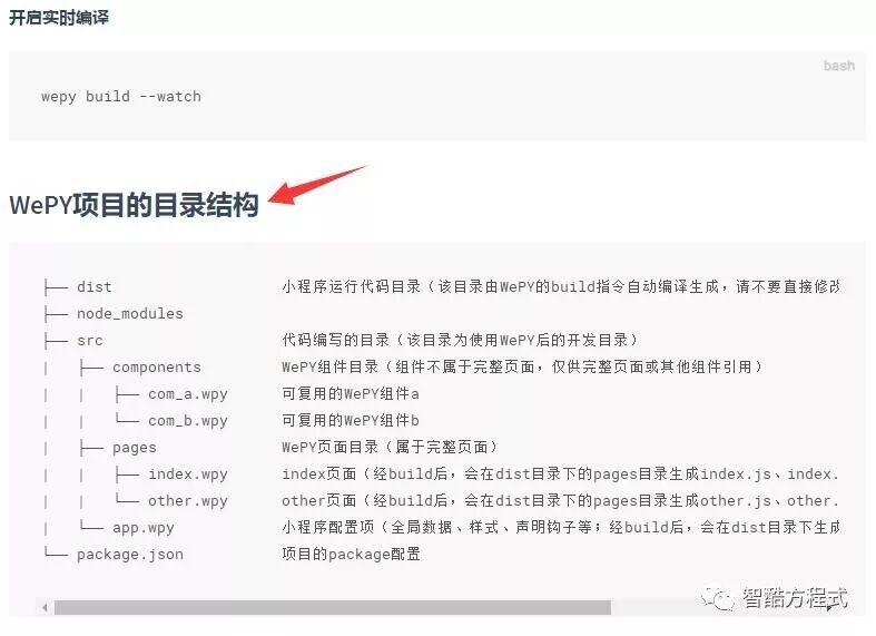 例如微信自己的wepy的官方文档,现在也添加了目录结构说明: