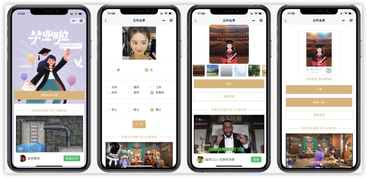在功能方面,小程序的功能不需要太复杂。既然说了是“小”程序,就要精简功能。一个照片合成小程序, 就不要加入太多让用户选择之类的功能,也不要让用户去思考太多,用户没有这么多耐心去探索。