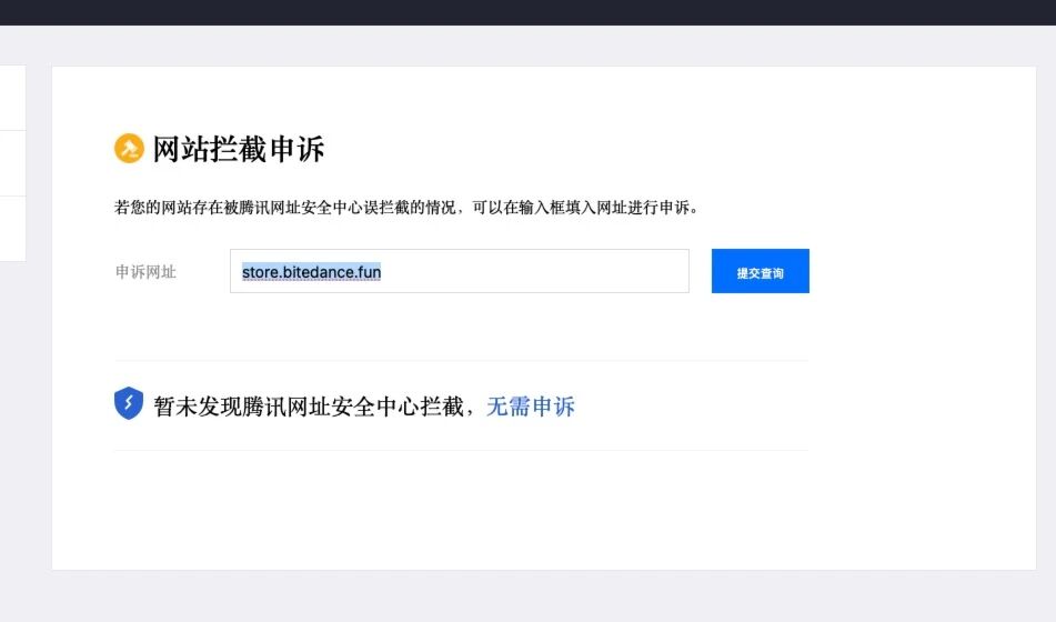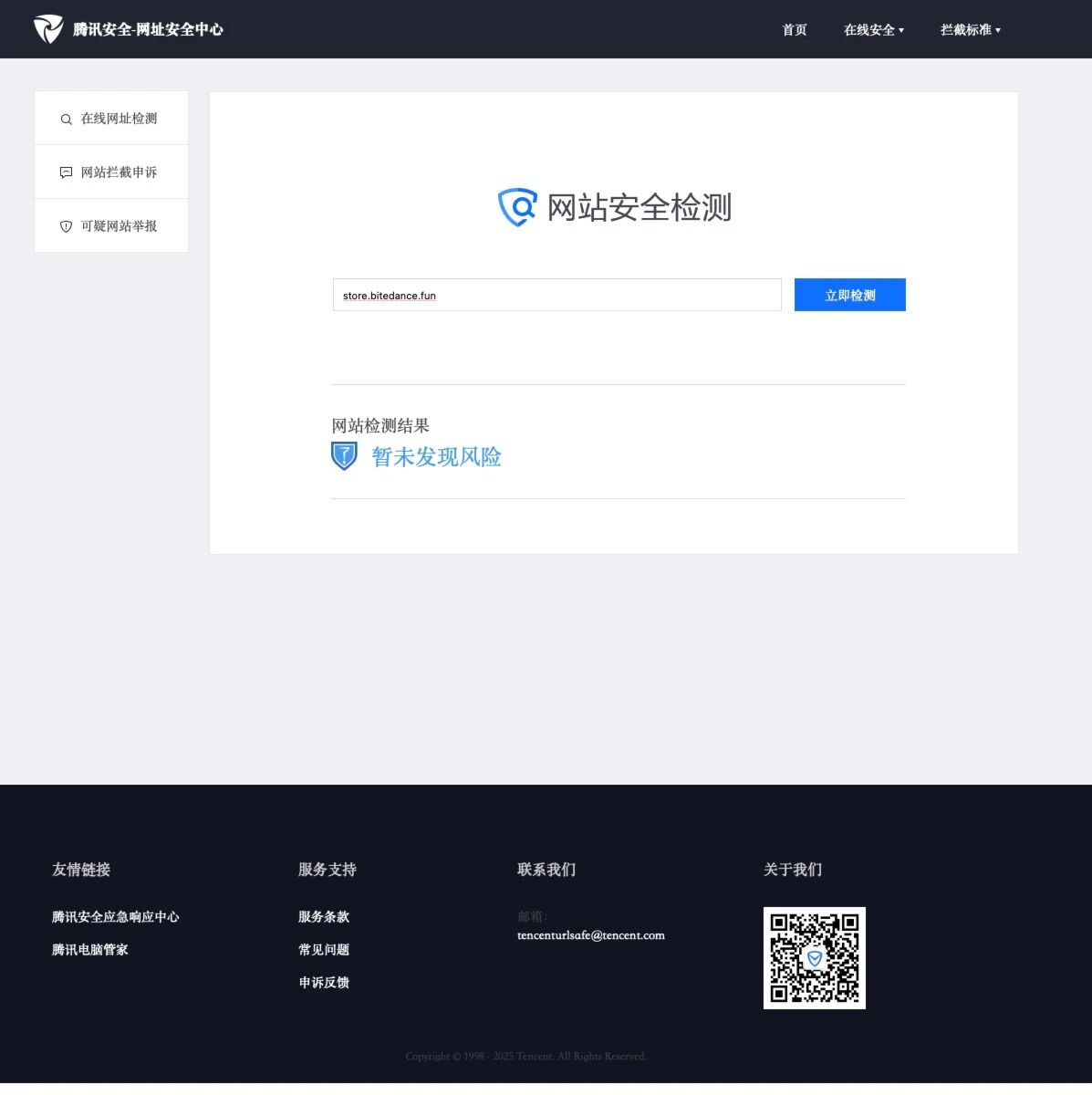 在腾讯安全-网址安全中心查询提示暂未发现腾讯网址安全中心拦截;