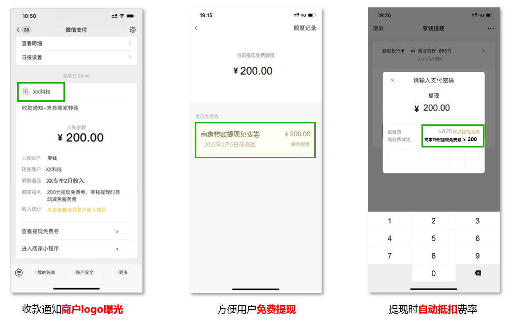 - 2021年1月1日-2021年12月31日,提现免费券入账日起一年内有效,单用户单年从单商户最多获得20万免费提现额度。