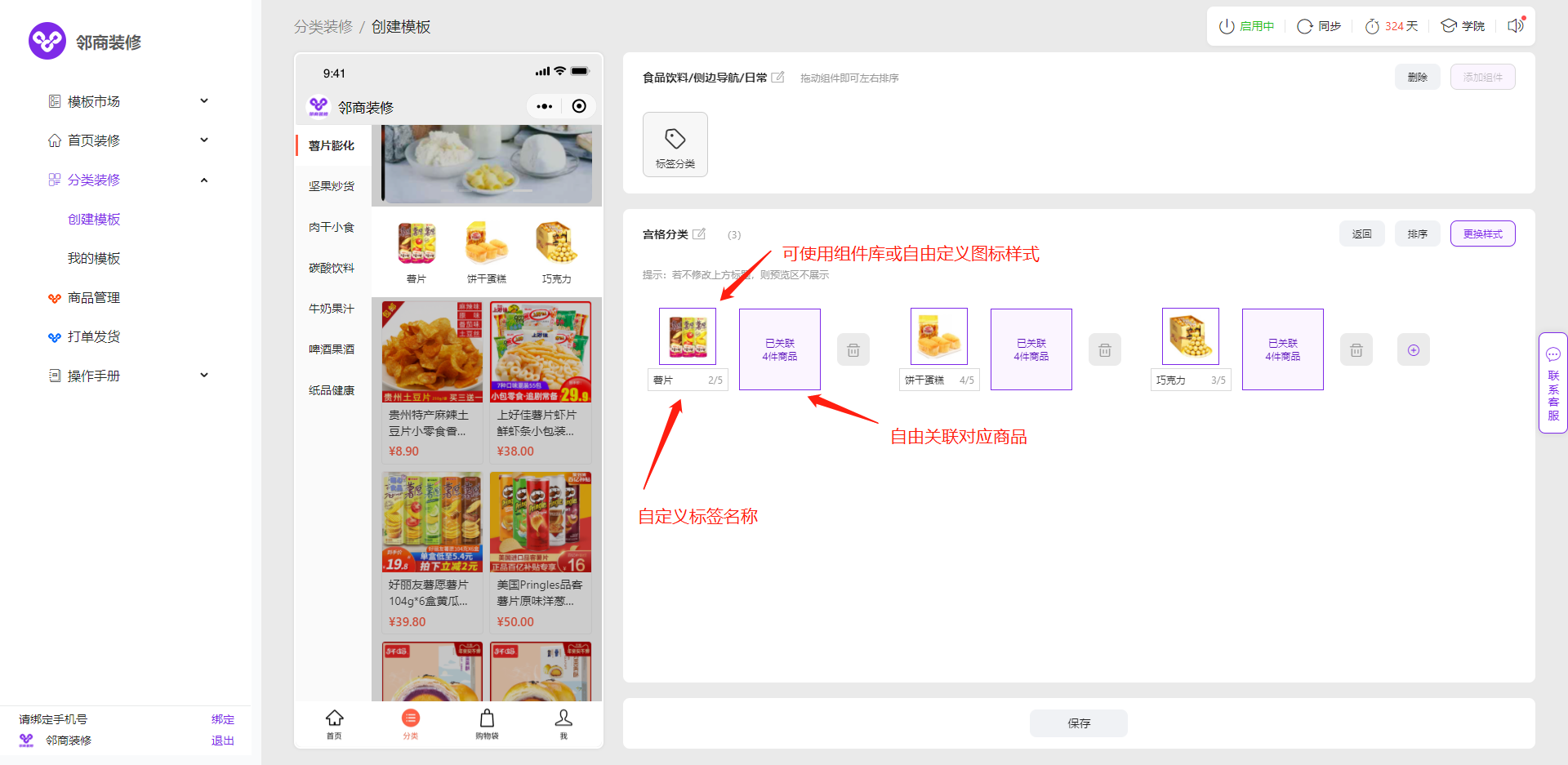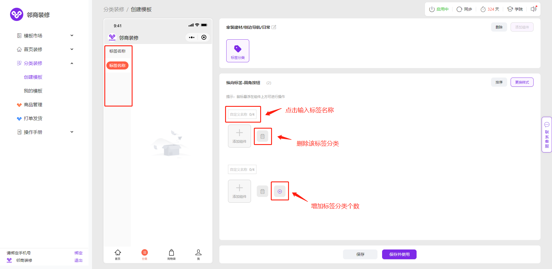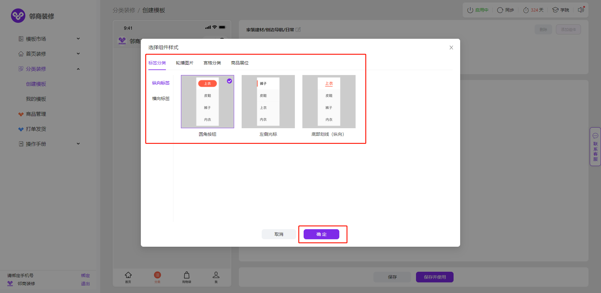 3.2.1 如需个性化定制,点击【分类装修】-【创建模板】