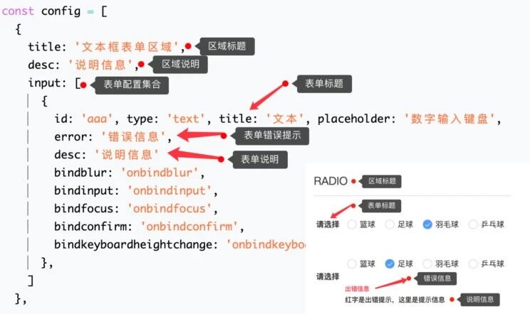{id: 'aaa', type: 'textarea', title: '文本域', placeholder: '输入文字', bindblur: 'onBlur'},
