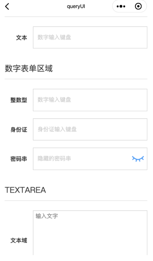 id: 'aaa', type: 'text', title: '文本', placeholder: '数字输入键盘',