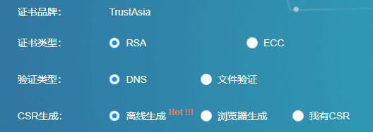 离线生成 推荐!!!:私钥在本地加密存储,更安全;公钥自动合成,支持常见证书格式转换,方便部署;支持部分 WebServer 的一键部署,非常便捷。
