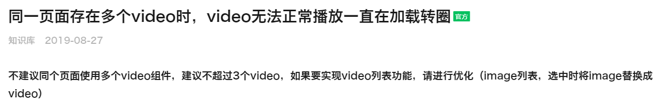 2、video标签,官方提示尽量不要超过3个标签(同一个界面),虽然我不知道为什么,但是肯定和性能有关;