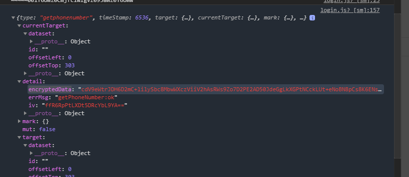 可以看出,我们的cloudID和encryptedData一样,是一串加密数据。我们要通过云函数获取手机号,需要的就是这串加密字段。