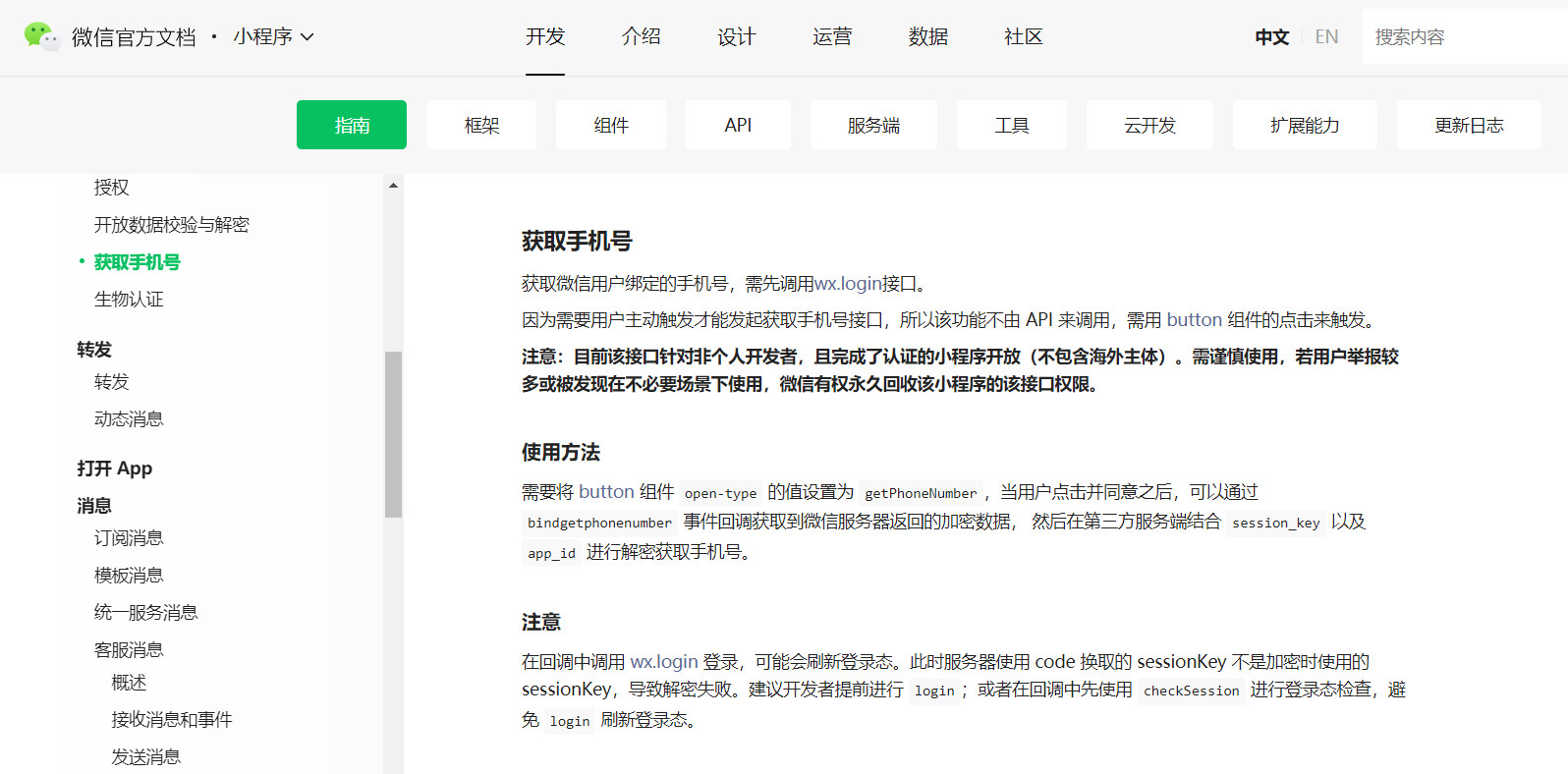 - 1,首先我们看下官方提供的获取手机号的文档。
