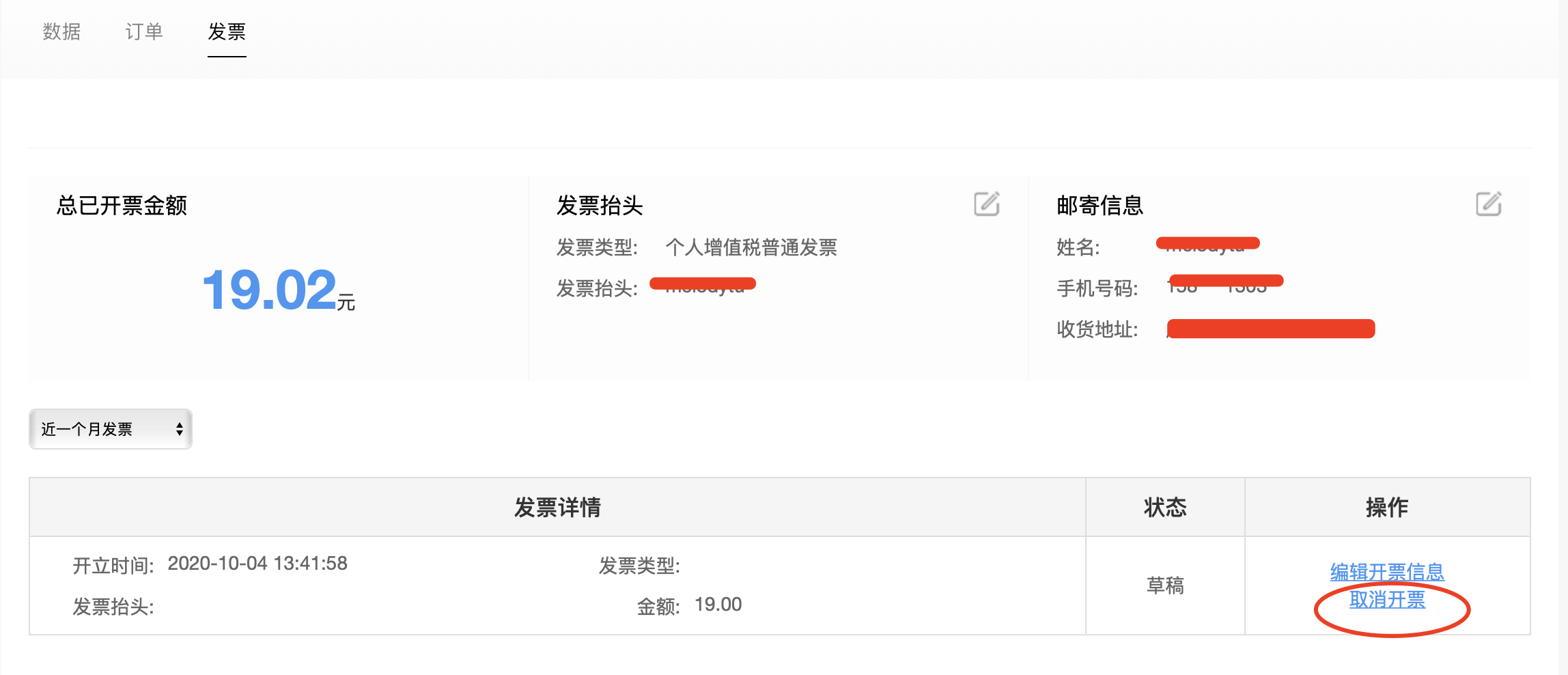 如果尚未提交,则可以点击取消开发票