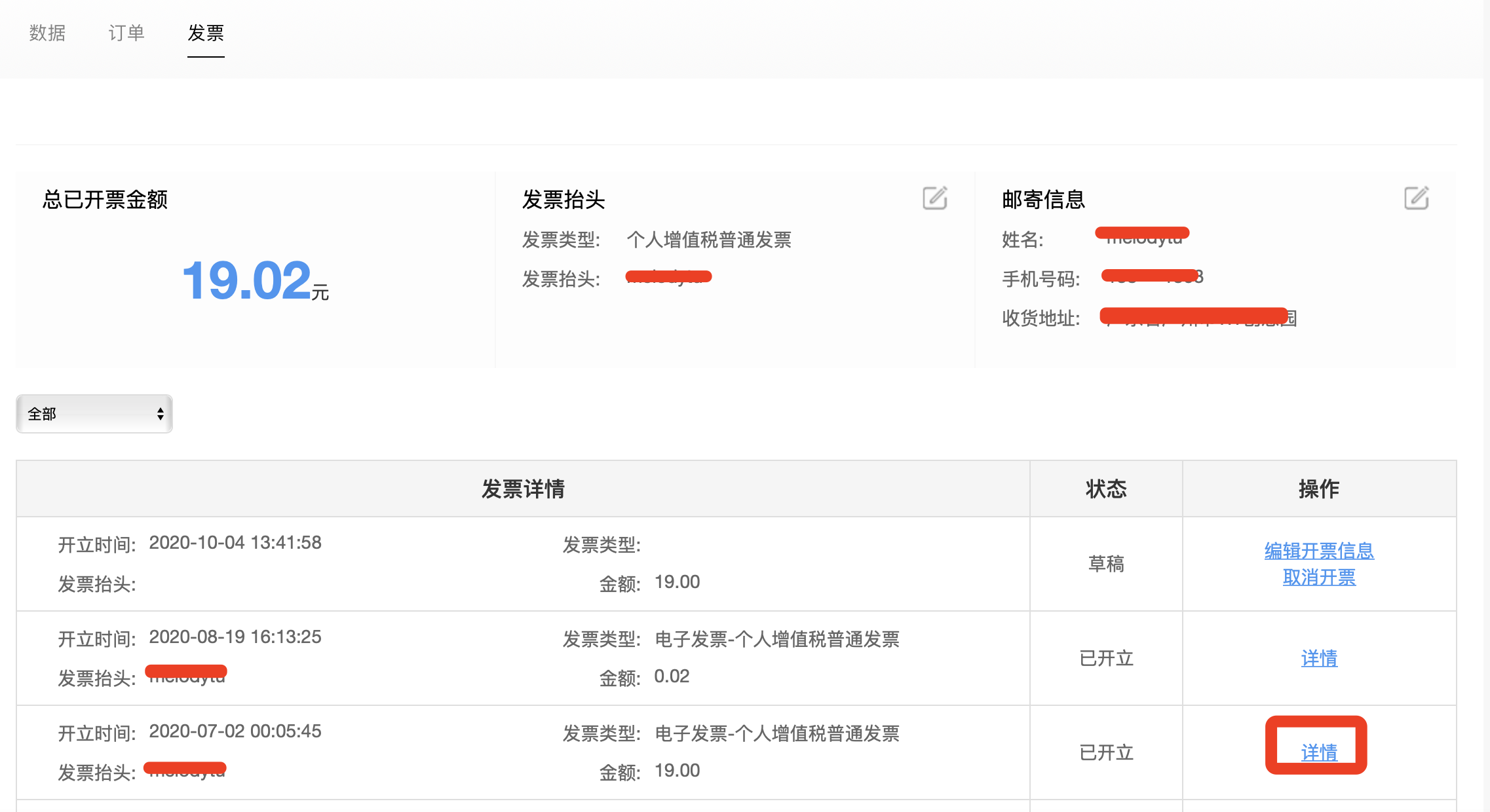 或者在订单详情中点击开发票