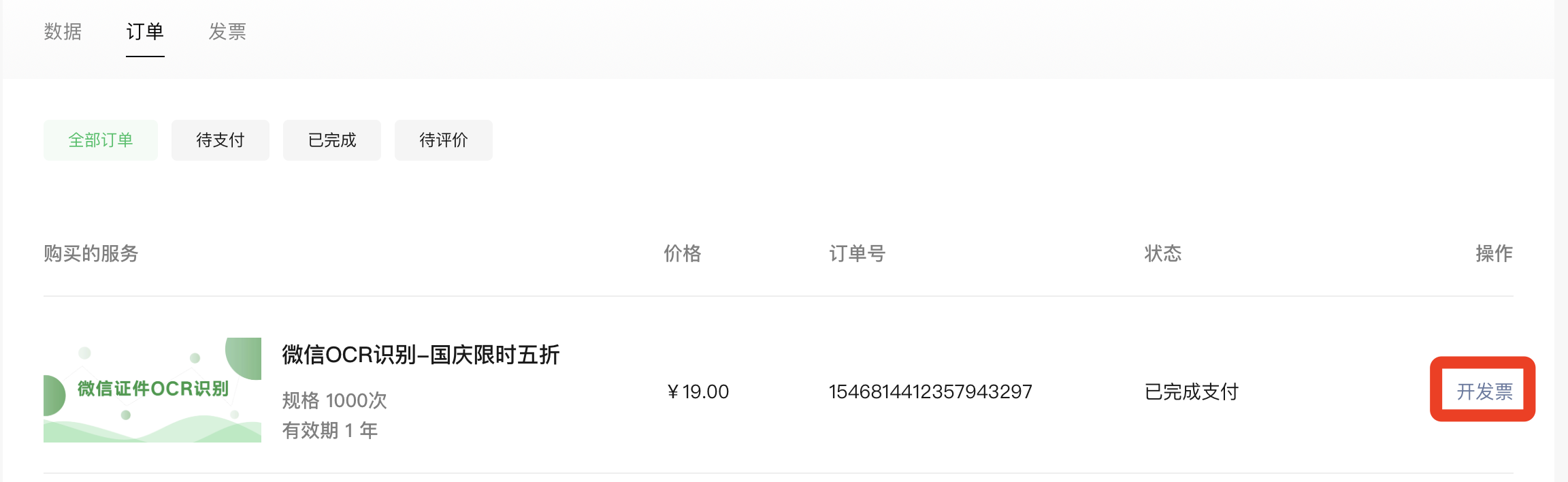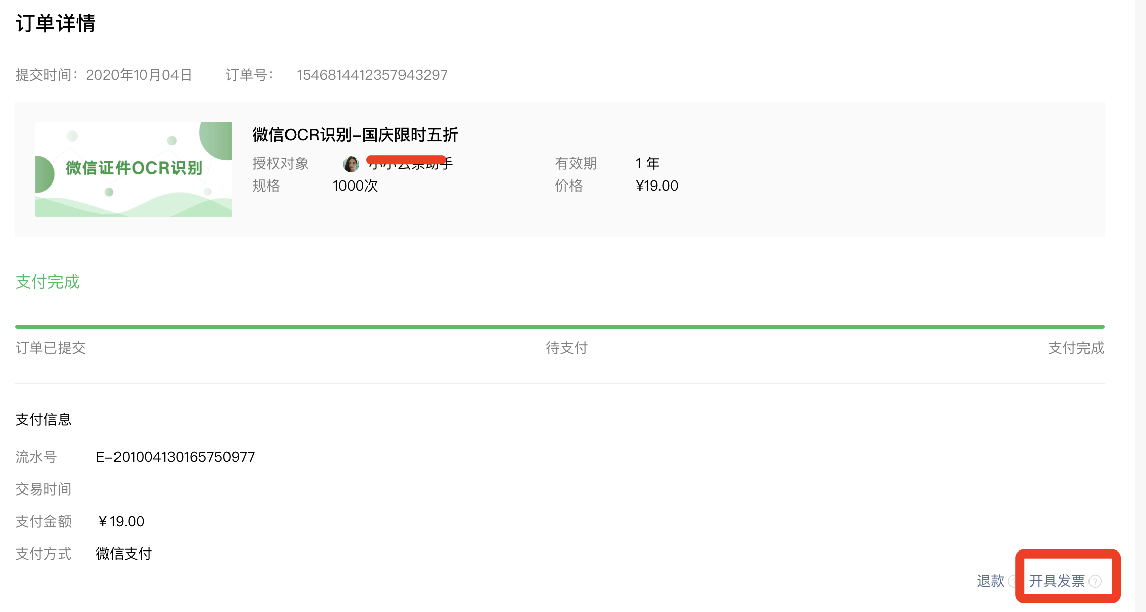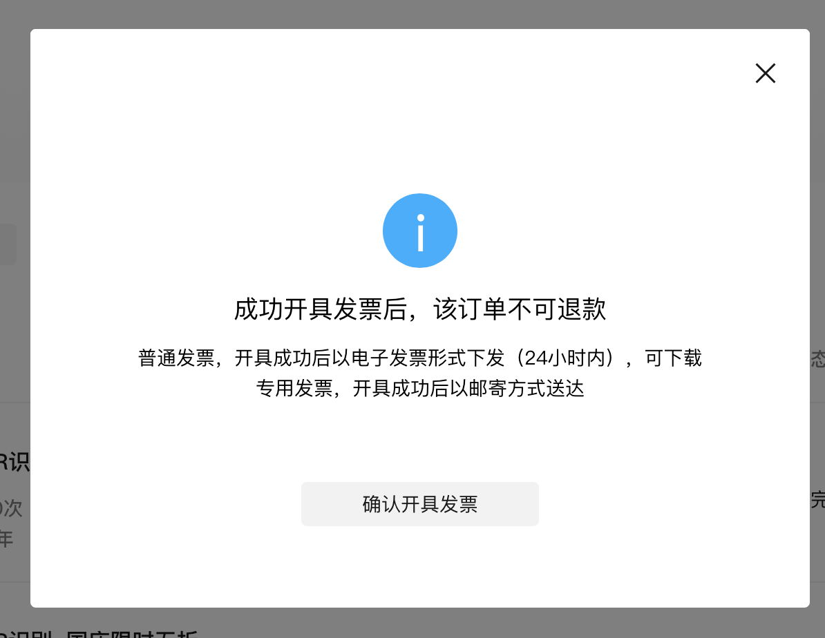 - 付款完成后,就可以开具发票