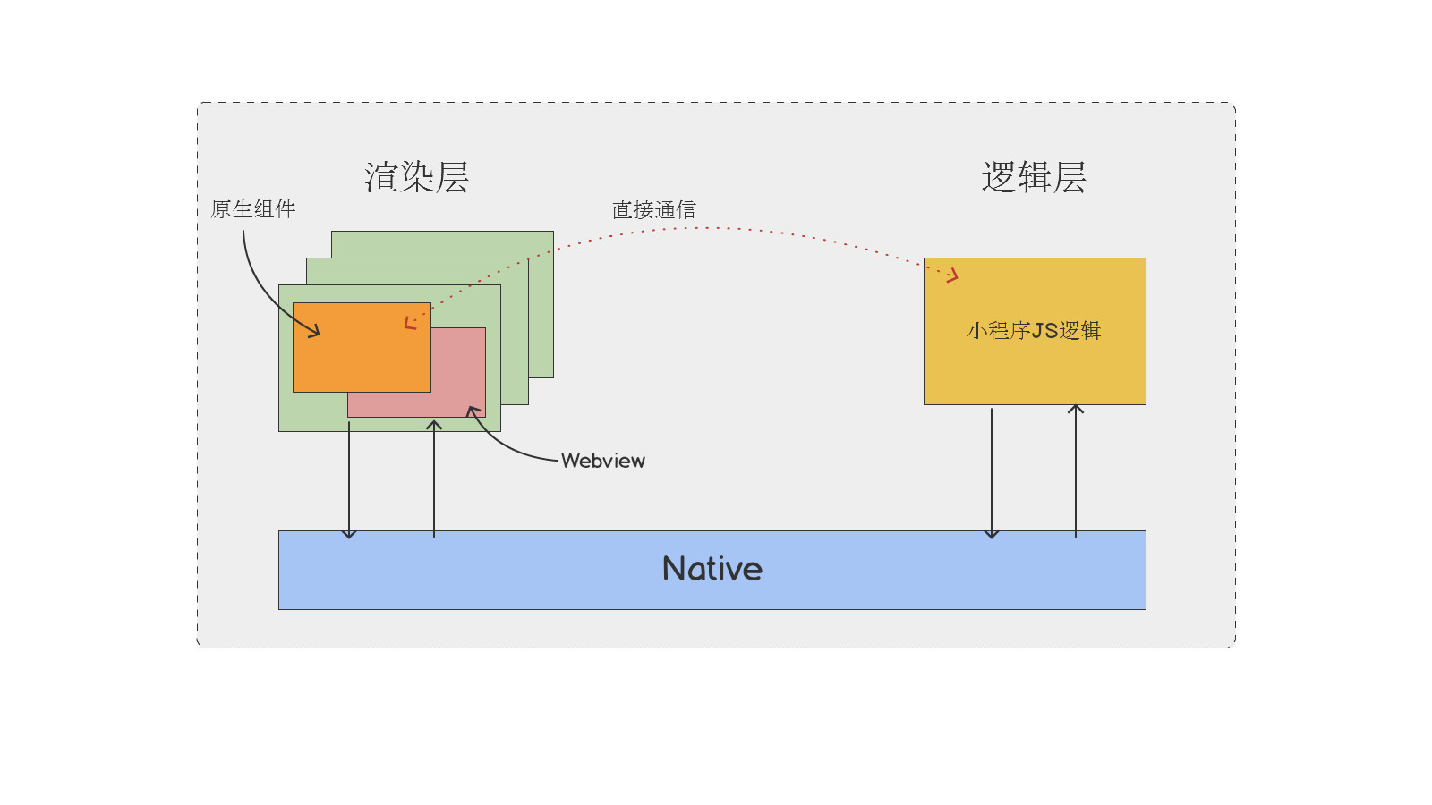 至此小程序双线程的模型就定下来了:渲染层(Webview)+逻辑层(JSCore)
