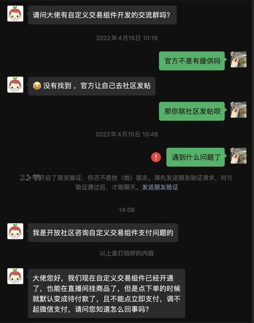2022.10.19 因为一句支付安全提醒,在社区说被诽谤,解释以后,拉公司多个人加我社区微信来骂