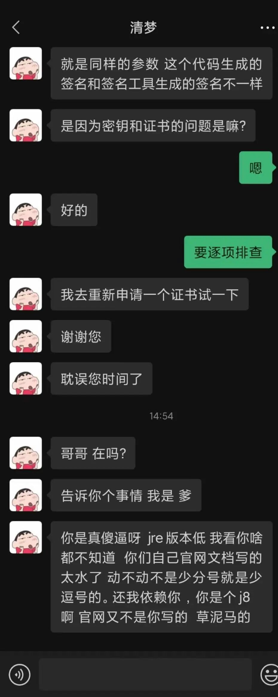 在支付板块有很大一部分问题属于“自己”认真阅读文档就可以解决的事情,而大多数人并不会在接入时去看文档要求、接口要求、参数名词定义等基础内容,在这过去的767天里我说过最多的几个字就是“认真看文档”,而这也曾一度被社区一些人视为“PUA”,甚至还有人私信跑来骂我,如果说叫人“认真看文档”,回答问题适可而止也是一种错,那我可能已经负分不及格了(难不成要给你手把手教学吗?)。