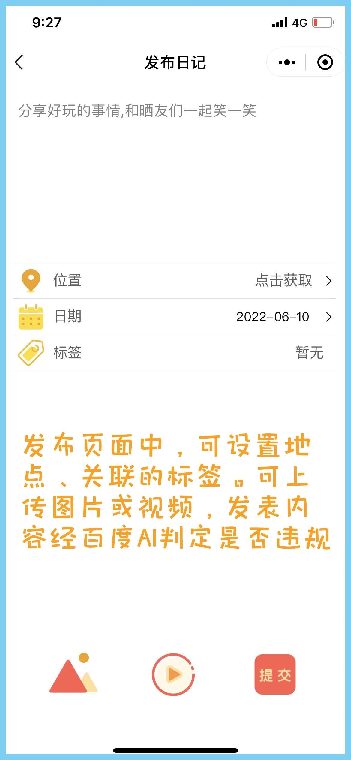 - 日记发布、日记查看、日记评论、点赞等基础功能。